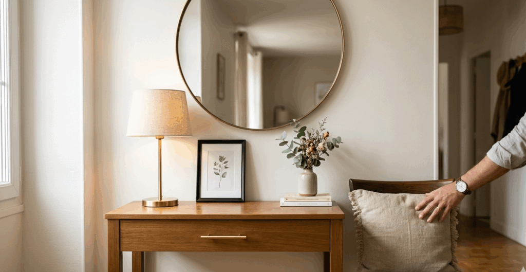 Placer un miroir avec intention, c’est choisir ce que vous voulez inviter deux fois chez vous.