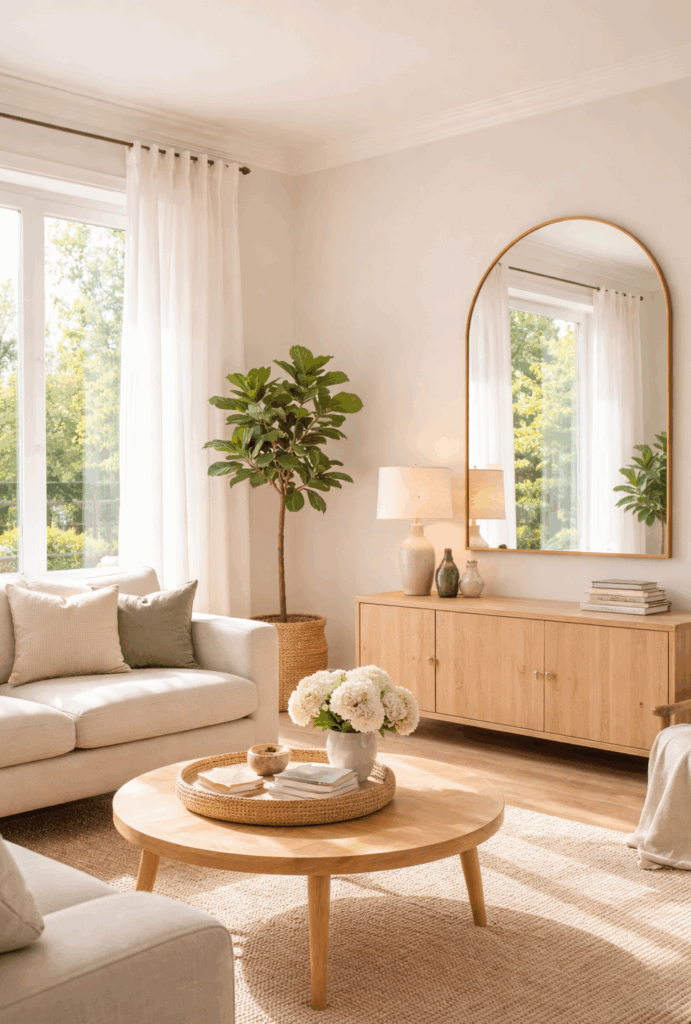 Dans un intérieur déco, les plus beaux résultats viennent souvent d’un miroir rond dans l’entrée, d’un miroir organique dans un salon, ou d’un miroir placé de façon à capter la lumière plutôt qu’à refléter un angle encombré.
