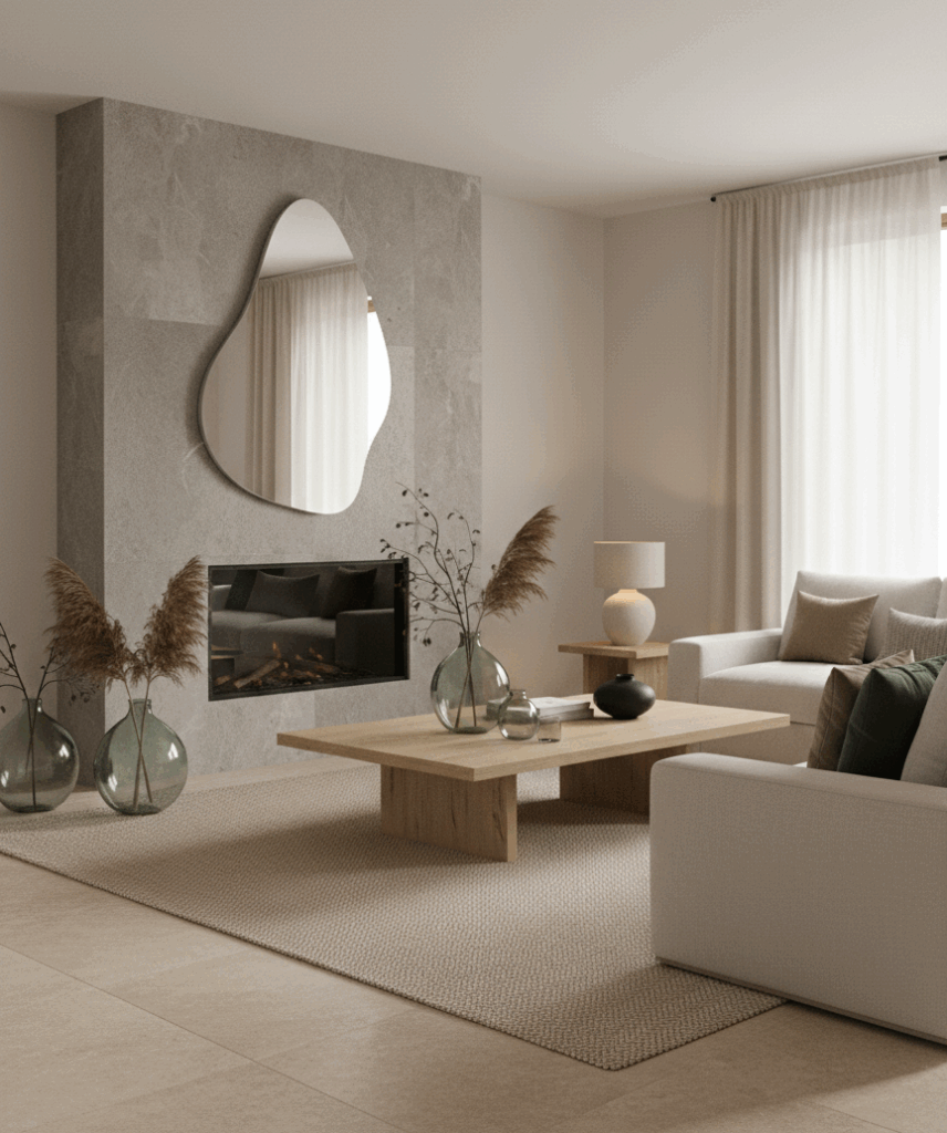 Un miroir décoratif bien choisi devient une pièce forte, sans jamais voler la vedette.