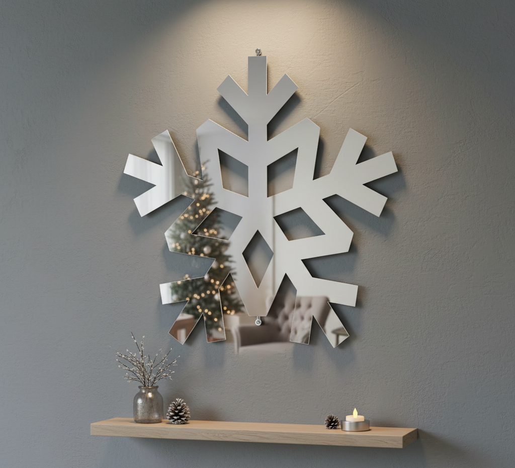 💡 Astuce déco : combinez un miroir flocon doré avec des bougies blanches et des branches de sapin pour une composition harmonieuse et délicate.