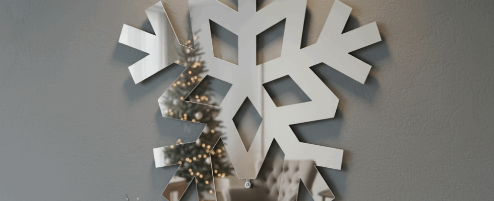 💡 Astuce déco : combinez un miroir flocon doré avec des bougies blanches et des branches de sapin pour une composition harmonieuse et délicate.